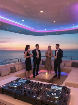 DJ set à bord d’un yacht sur la French Riviera pour party boat à quai ou en mer, je viens mixer pour vous à bord de votre yacht avec mon matériel (stand DJ, platines, enceintes, jeux de lumières …). Anniversaire, soirée privée, corporate ou soirée VIP, je sais être discret mais aussi faire monter la température pour une soirée explosive.